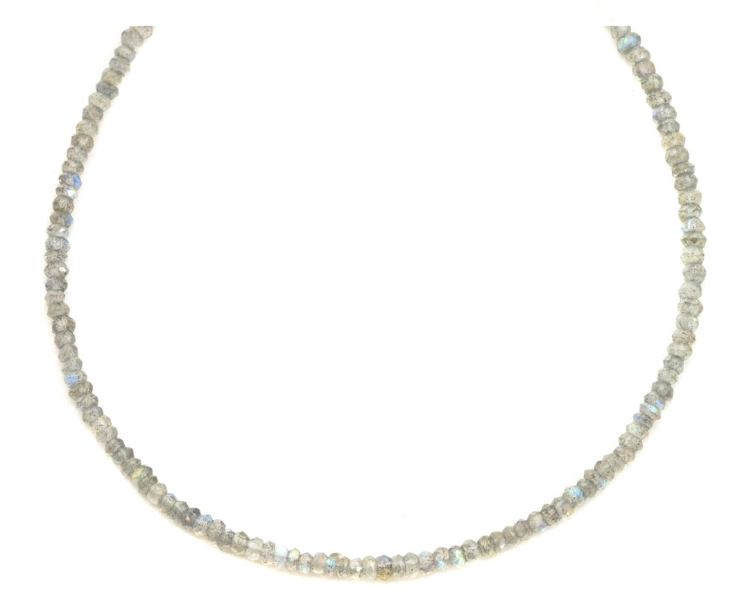Labradorite Necklace Solid Strand Micro Faceted 18 19 Inch 14k gold filled or Sterling Silver AAA Blue Flash Cut Contemporary Design