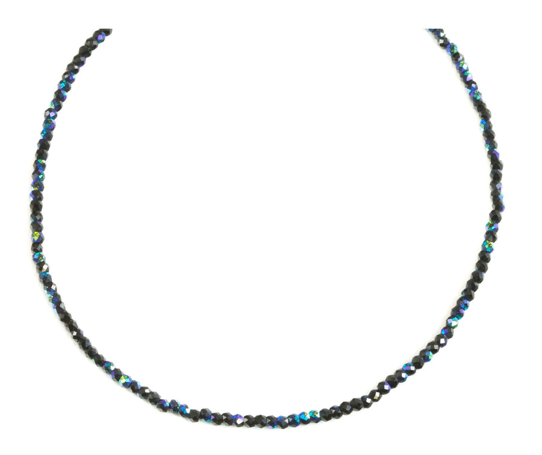 Black Spinel Necklace Sterling Silver or 14k Gold Filled 2 to 3mm 18 Inch Faceted AAA Solid Beaded Strand Natural Faceted Mystic Blue Finish