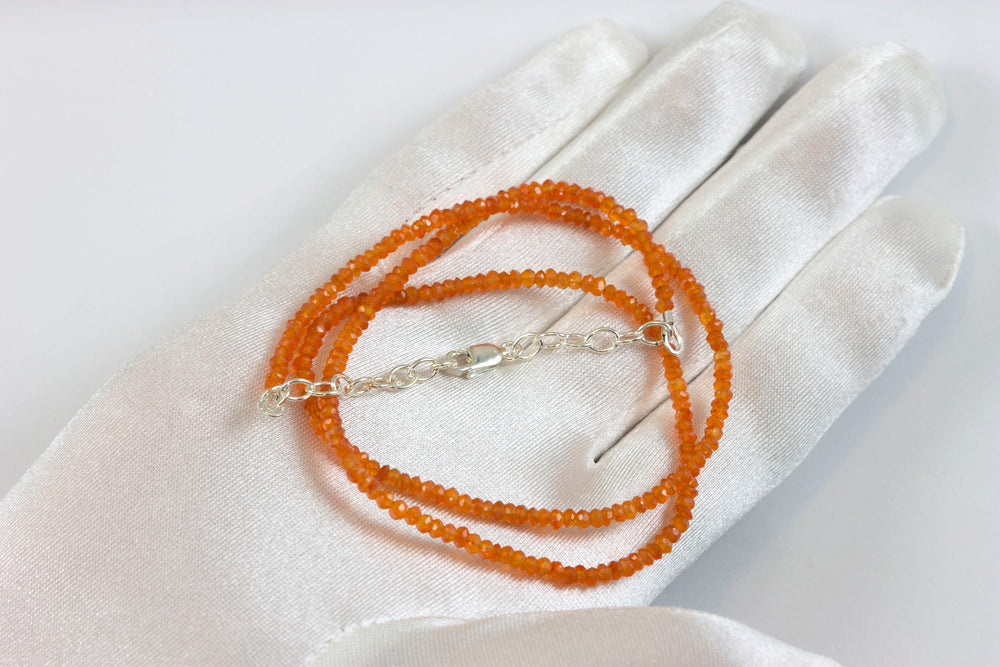Carnelian Necklace Faceted Solid Strand Sterling Silver or 14k Gold Filled Dainty and Small 18 19 Inches Rich Earthy Orange