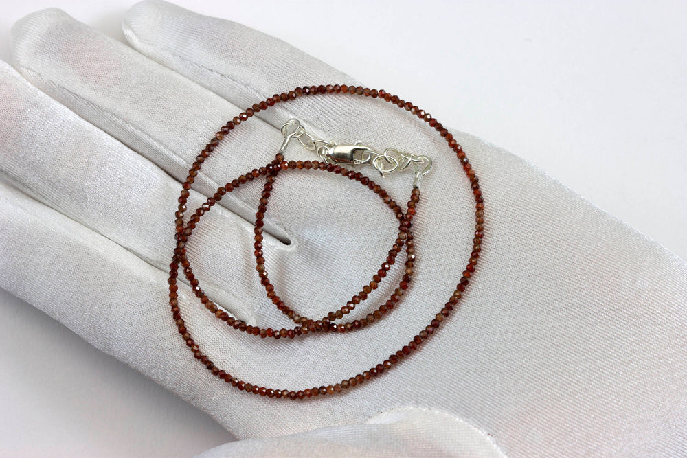 Red Zircon Necklace 14k Gold Filled or Sterling Silver Solid Strand Faceted Small Dainty Stones 18 19 Inches Simple Vintage Look