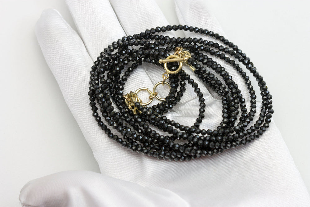 Black Spinel Necklace 14k Gold Filled 3mm 18 Inch 4 Strands Faceted AAA Solid Beaded Natural Faceted Classic Simple Super Sparkly