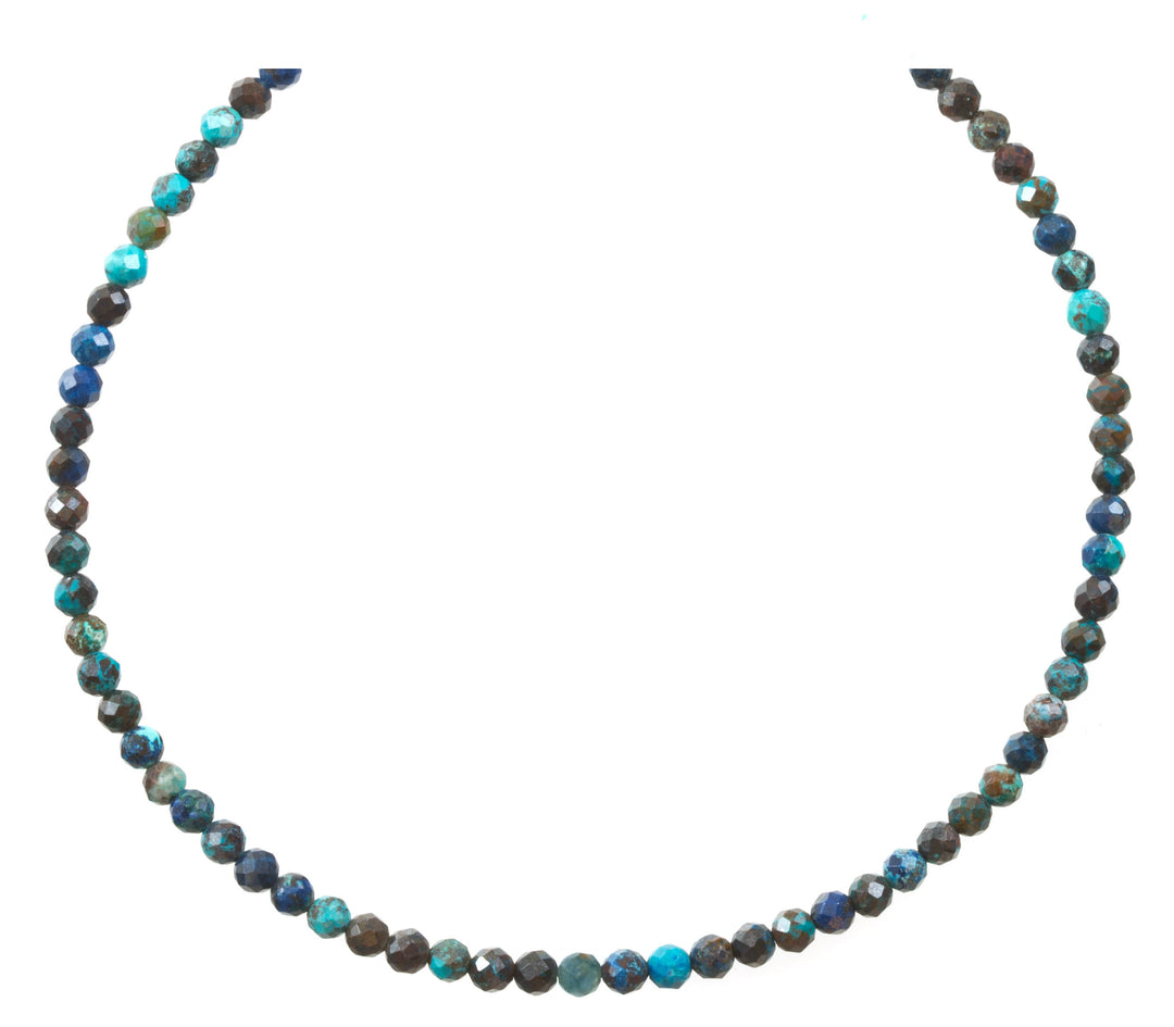 Chrysocolla Blue Necklace 14k Gold filled or Sterling Silver 18 19 Inch Chain Faceted Natural Earthy 3mm Blue Solid Strand Dainty Dark Blue
