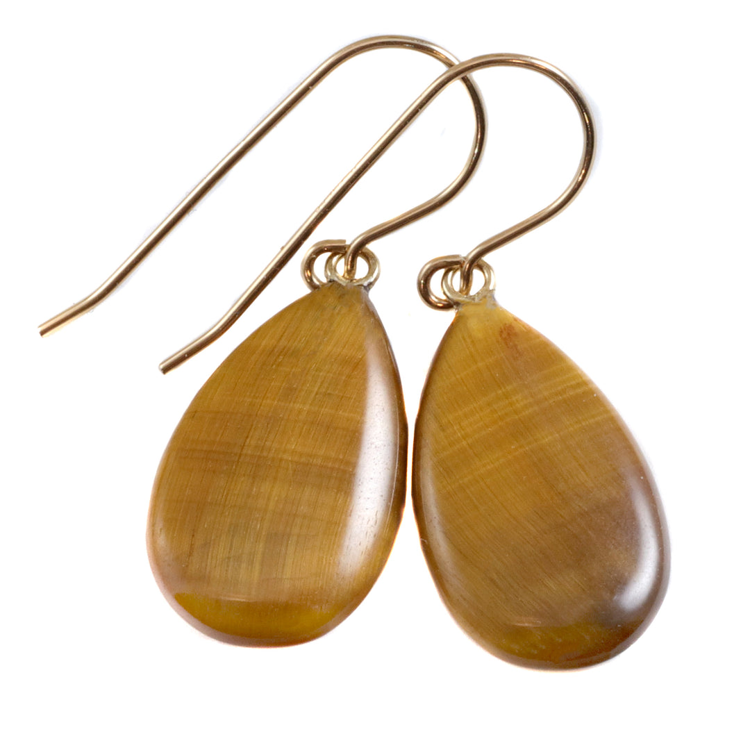 Tiger's Eye Earrings Smooth Dainty Teardrops dangle Sterling Silver or 14k Solid Yellow Gold or Filled Spyglass Designs Natural Tiger Eye