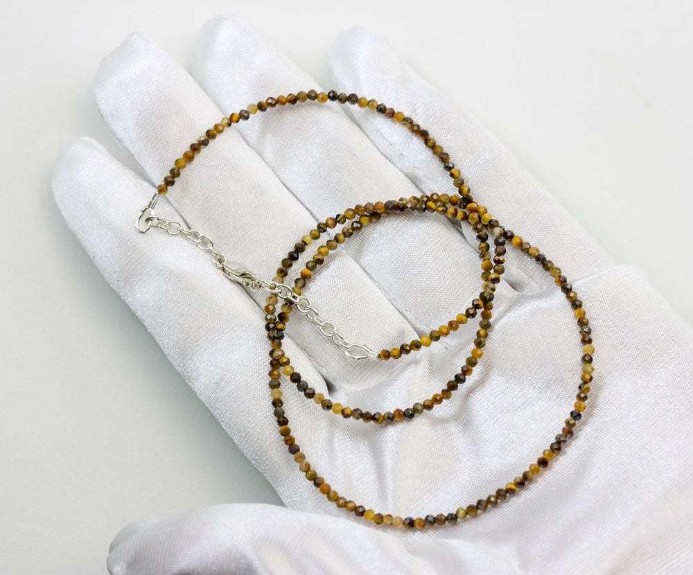 Tiger's Eye Necklace Natural Earthy Solid Strand Dainty Small Sterling Silver 14k Gold Filled Micro Faceted 18 19 Inches Simple Golden Brown