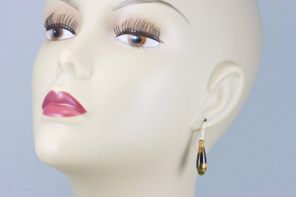 Tiger's Eye Earrings Smooth Oval Teardrop dangle drop Sterling Silver Spyglass Designs Natural Long Pear Shape Select Cut AAA Spyglass