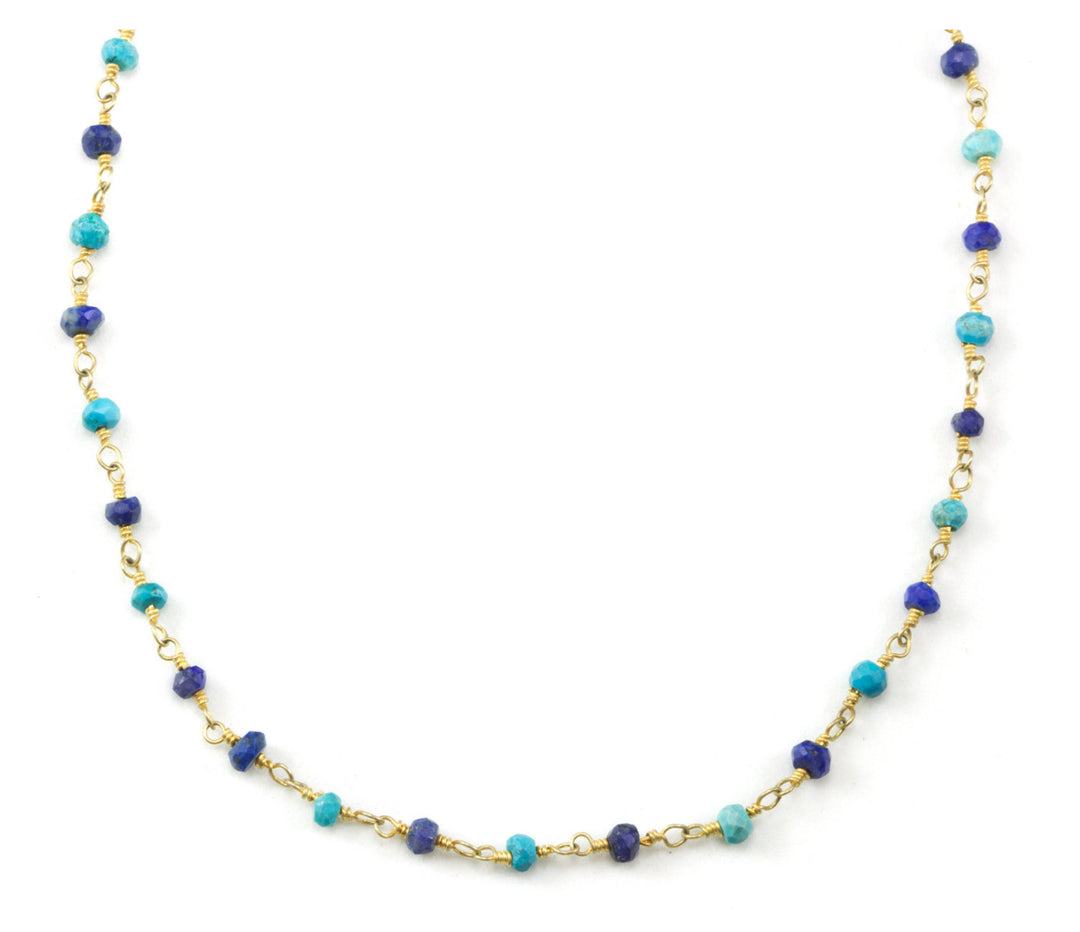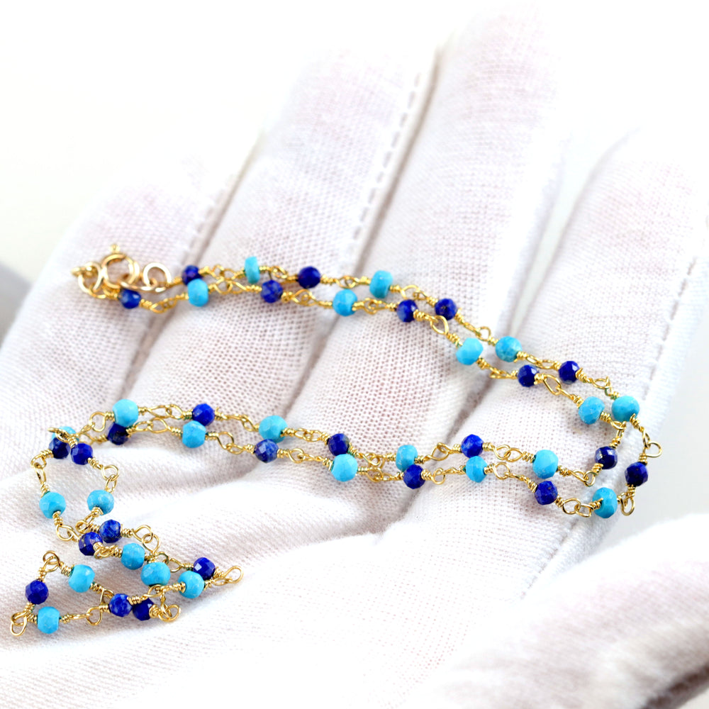 Blue Lapis Lazuli and Turquoise Necklace Spaced Chain Link Faceted Beaded 14k Gold Filled Necklace 18 19 Inches Simple