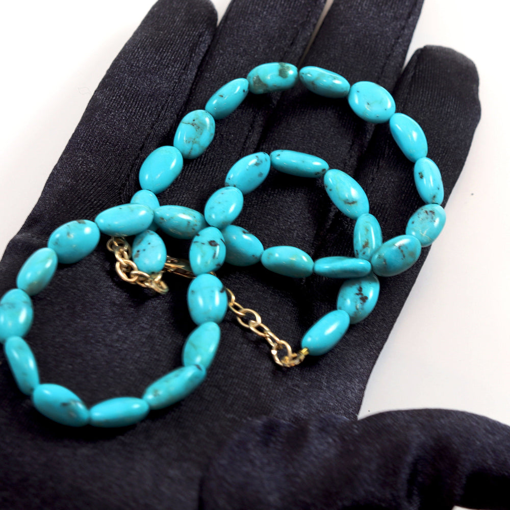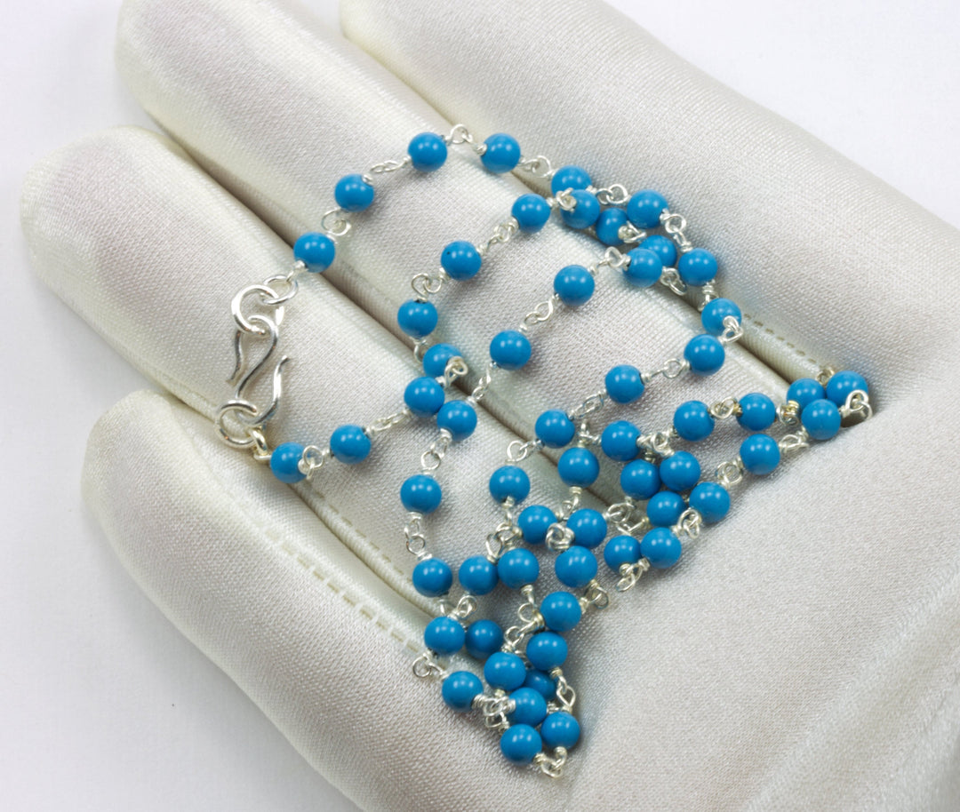 Mexican Blue Turquoise Necklace Solid Strand Sterling Silver or 14k Gold Chain 20 Inches natural stone Smooth Light Blue 7mm Rondelles