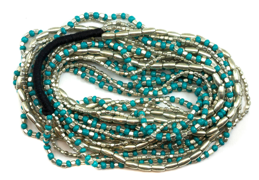 Turquoise Blue Beaded Necklace Solid Strand Link Beaded Silver 36 Inches 5 Strands Silver Beads Mixed or Mixed with brass beads