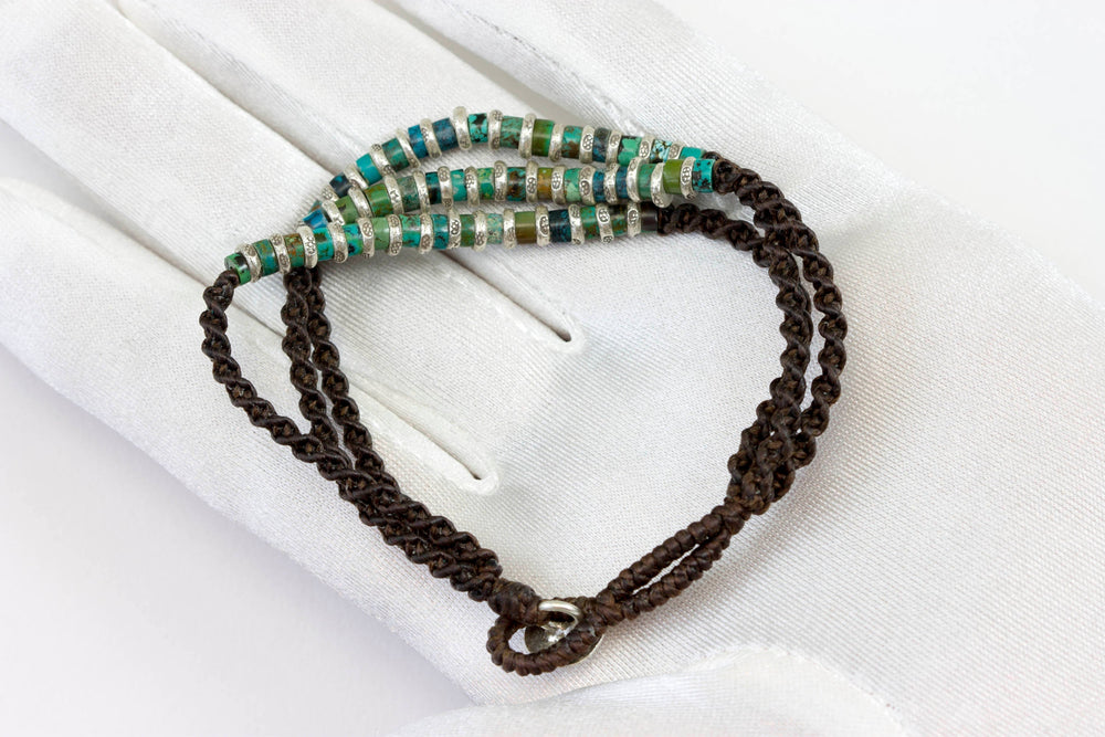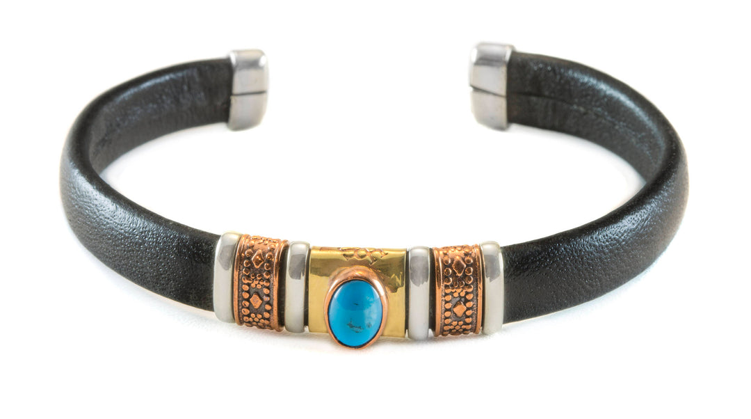 Leather Sterling Silver Bracelet Man's Womens Cuff Adjustable Copper Brass Wrapped Unique Blue Turquoise or Lapis Black Quality 8 9 Inch