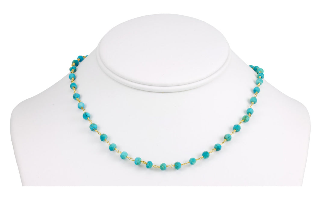 Turquoise Necklace Beaded 14k Gold Filled or Sterling Silver Solid Strand Faceted 18 Inch AAA Rich Blue Simple Dainty Design