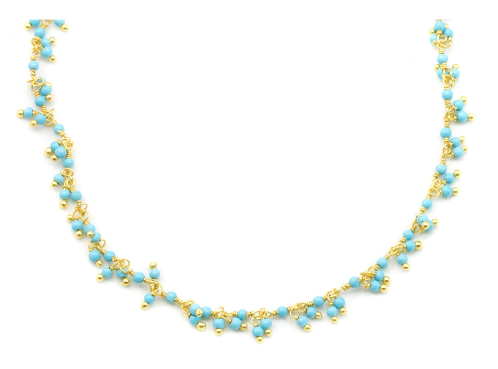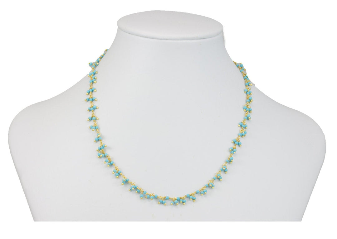Light Turquoise Blue Beaded Necklace Chain Link Smooth Vermeil 14k Gold Cluster Style 18 19 Inch Simple Dainty Natural Spyglass Designs