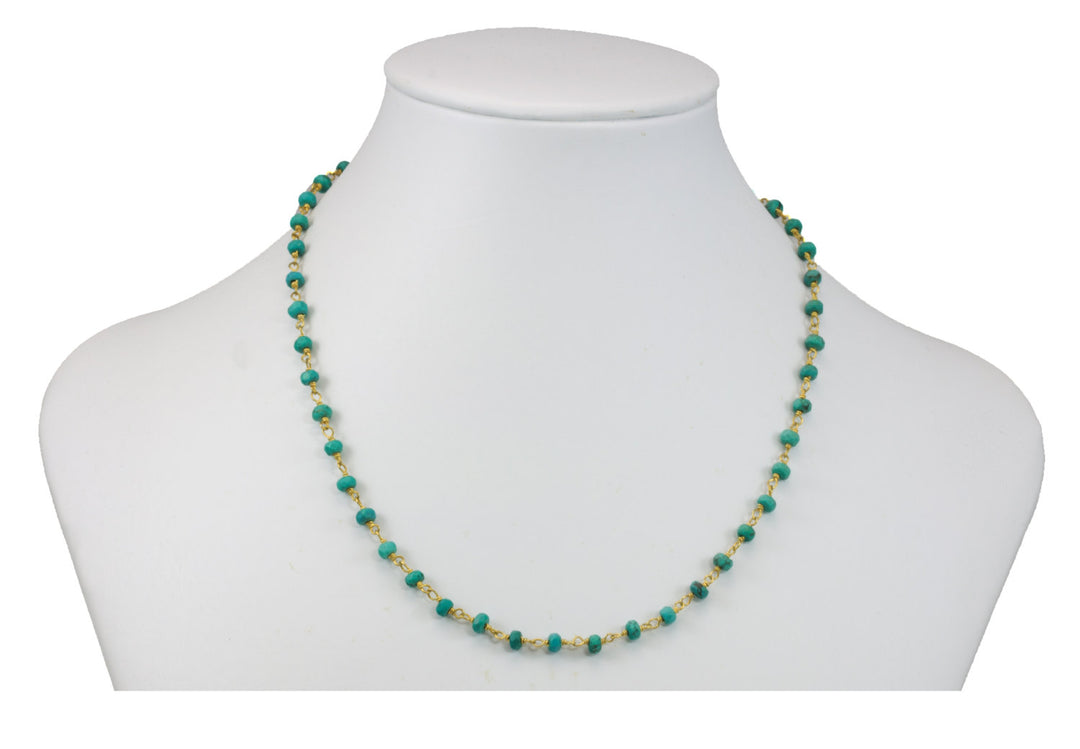 Turquoise Necklace Blue Green Natural Faceted Stone Beaded Vermeil 14k Gold Chain Link 18 19 Inches Simple Dainty Everyday Spyglass Designs