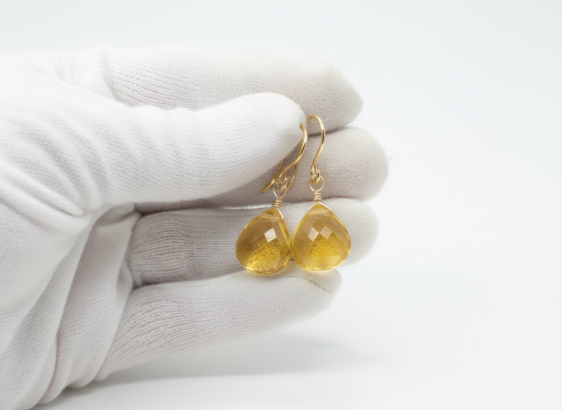 Yellow Citrine Quartz Earrings faceted Heart Drop 14k solid gold or filled or Sterling Silver Spyglass Designs Bright Yellow Simple Classic - Spyglass Designs